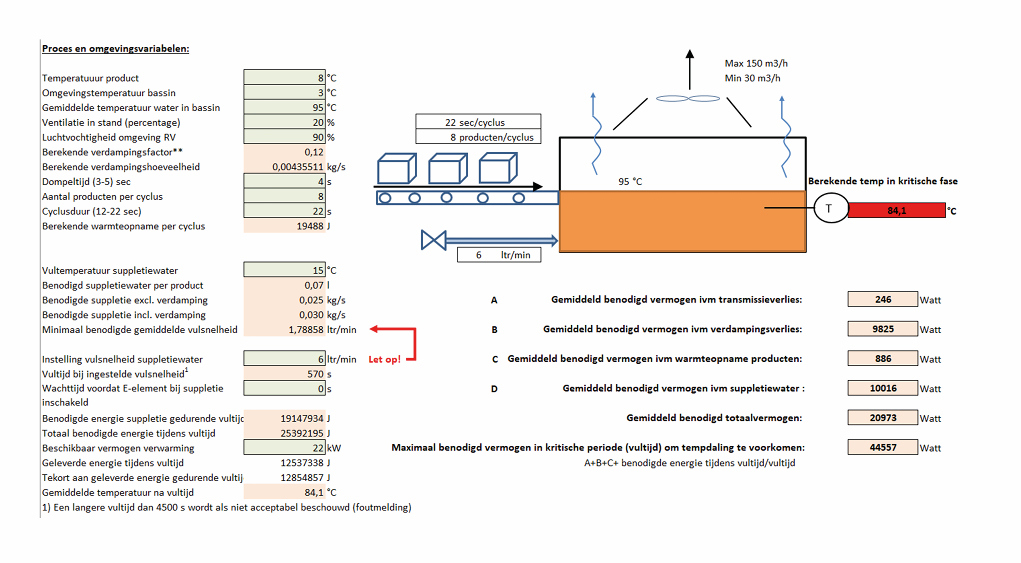 Met behulp van deze informatie hebben wij een rekenmodel uitgewerkt, waarbij alle variabelen kunnen worden ingegeven die het warmteverlies beïnvloeden. Met dit rekenmodel hebben wij de fabrikant voorzien van meer en gedetailleerder inzicht waarmee het in staat wordt gesteld om het proces te optimaliseren. Dit resulteert in een stabiel proces met een zo gering mogelijk benodigd vermogen.