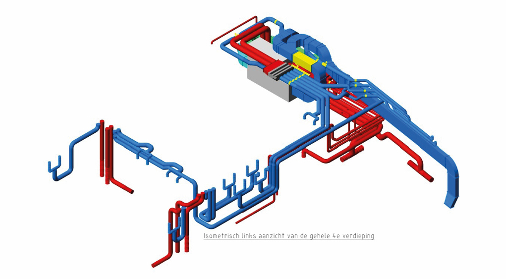 Uitdaging bij dit project was het kunnen onderbrengen van de installaties achter de inrichting (voorzetwanden, meubel-maatwerk, systeemplafonds), zonder dat dit ten koste zou gaan van het functioneren van deze installaties.